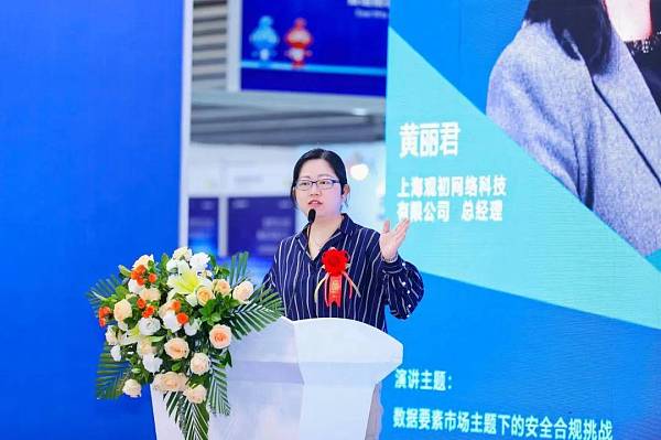 会上,上海观初网络科技有限公司 总经理 黄丽君在本次大会进行了《数据要素市场主题下的安全合规挑战》的主题分享。