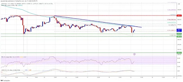 目前,以太坊正在从损失中恢复,已突破近期从 3,278 美元跌至 2,867 美元的 23.6% 斐波那契回撤位。然而,其交易价格继续低于 3,100 美元和 100 小时简单移动平均线 (SMA)。