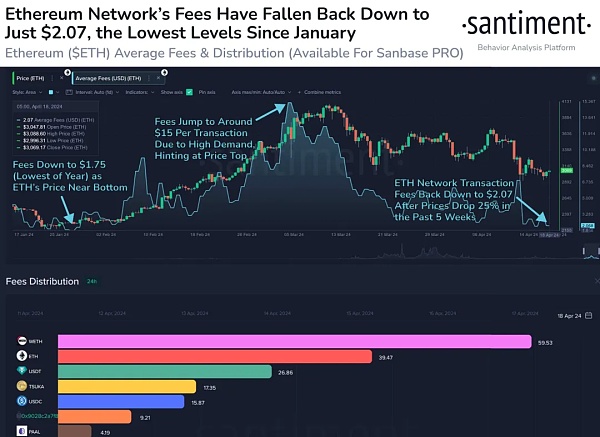 链上分析公司 Santiment 的最新数据显示,以太坊网络的交易成本显着下降。在以太坊上进行交易的成本已暴跌至 2.07 美元,较 3 月 4 日需求增加期间记录的 15.21 美元大幅下降。