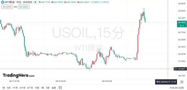 中东地缘冲突对全球金融市场的影响不能被忽视。自去年以来,特别是今年初现货ETH的出现,比特币作为「避险资产」属性成为了一种谜。其实,它更像是一种「风险资产」,与全球宏观环境和牛熊周期更为密切相关。而伊朗和以色列之间的冲突加剧了中东地缘政治风险,可能对全球石油供应产生拖累——就在今日上午,美国WTI原油期货价格日内涨超过2.5%,一度站上85美元/桶,布伦特原油期货价格也最高涨超过89美元/桶。