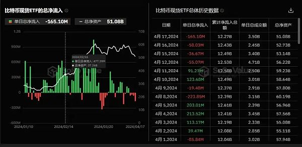 近期比特币现货 ETF 净流出规模巨大,引发市场关注。据SoSoValue数据显示,4月18日比特币现货 ETF 净流出达到2315万美元,已连续5日净流出。截止目前,比特币现货ETF总资产净值为524.1亿美元,ETF净资产比率高达2.82%,历史累计净流入更是达到了122.4亿美元。