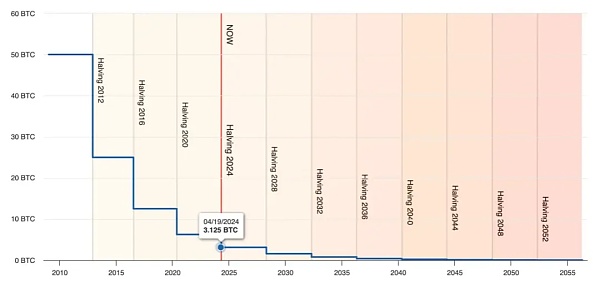 什么是比特币减半?据了解,比特币减半是一个大约每四年发生一次的事件,即将“挖掘”比特币交易的奖励减半。通过减少新比特币的生产速度,减半为比特币的经济模型引入了通缩的属性。减半事件是比特币设计的一个关键特征,以确保其稀缺性、价值保持以及作为一种数字货币的长期可持续性。根据比特币协议的设计,减半事件发生在大约每210000个区块被开采之后,这个时间间隔大约是四年,因此,下一次比特币减半的时间将取决于区块高度的累积,而不是一个固定的时间点。