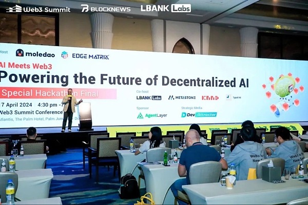 Jamee 表示,作为 AI x Web3 的交叉领域,本次黑客松对参赛团队的能力要求是比较高的。参赛团队既要具备 AI 产品设计、开发的能力,同时也要具备 Web3 的能力,比如最核心的经济模型设计。因此,EMC 团队在报名期间就上线了 DeAI 先锋者工作坊。在 3 月份,EMC 团队密集做了很多直播,撰写了多篇社媒深度文章,向开发者和高校进行宣讲科普。再加上 DeAI 热度的持续升温,特别是 Stability AI CEO 带着核心团队辞职,宣布 All In 去中心化 AI,带动了很大的一波热度,也意外助推了此次黑客松的开展。最终,本次黑客松共计 238 个项目报名参赛,经过筛选 18 支队伍进入到了线上路演,10 支队伍晋级迪拜线下举办的黑客松决赛。