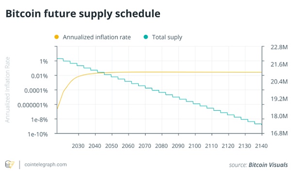 根据 Hansen 的说法,根据区块的发现速率和每四年(或每 210,000 个交易区块)大约发生一次的减半过程,最后一个比特币最有可能在 2140 年左右被挖掘出来。