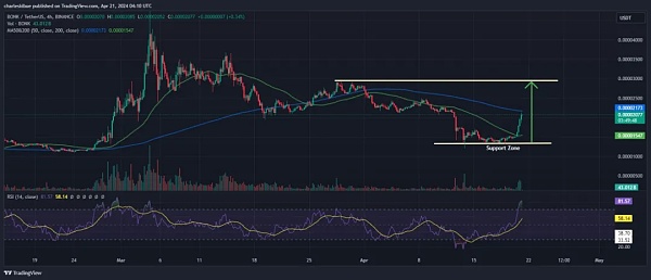 债券价格多头表明弹性在 0.00001357 美元支撑区域重新组合,推动价格上涨。此外,RSI 支撑了这一势头,帮助多头推高价格,因为他们的目标是在 3 月 29 日收复 0.00002937 美元