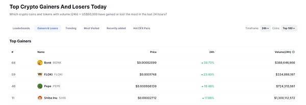 SHIB 价格上涨正值比特币减半后新一轮 meme 币狂热爆发之际,BONK、FLOKI、PEPE 和 SHIB 成为当今涨幅最大的货币。
