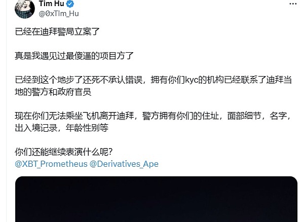发推称已在迪拜警局立案,同时提供了项目方的TG信息,希望你能继续配合大家维权,毕竟你掌握的信息可能最多