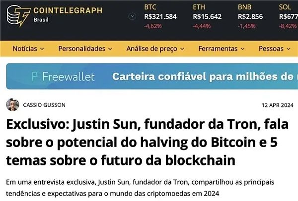 受访Cointelegraph:孙宇晨解析比特币减半影响及加密技术未来