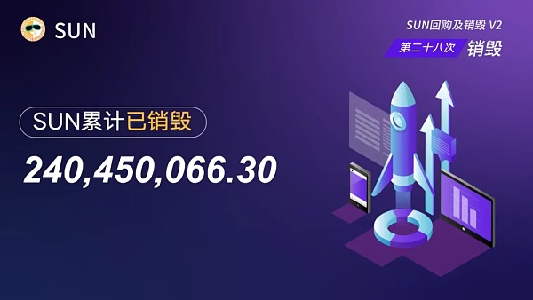 SUN代币第二十八期回购销毁完成 累计已销毁超2.4亿枚