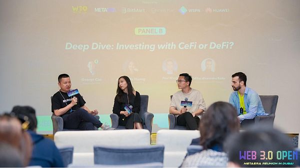 Amber Group 管理合伙人Annabelle Huang、PSE Trading 创始合伙人Paul Wang、SphereX 投资者关系负责人Mihai Alexandru Radu 以及AscendEX 创始人George Cao,围绕「深入探讨: CeFi 与DeFi 的投资之道」这一议题展开了圆桌讨论。
