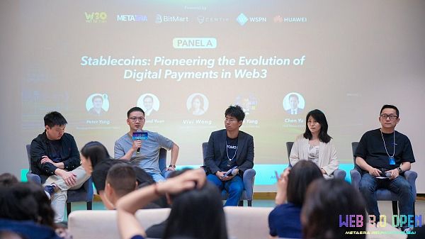 WSPN 创始人 Raymond Y.、FOMO Pay 联合创始人 Zack Yang、鲲KUN 首席顾问余晨、StableWallet 全球商务拓展总监 Vivi Wong 以及分布式资本董事总经理 Peter Yang,围绕「稳定币:Web 3.0 数字支付革命」这一议题展开了圆桌讨论。