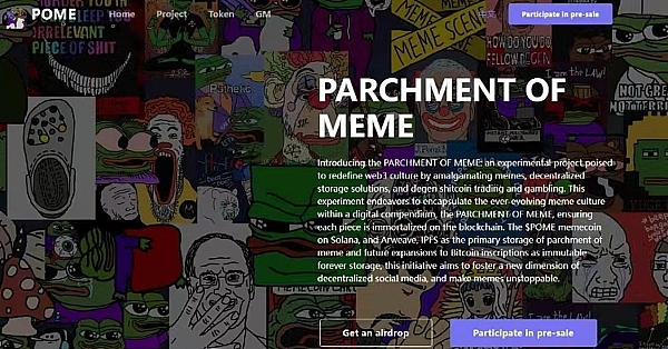是一个面向Meme的永久储存相簿。而POME是PARCHMENT OF MEME上使用的原生代币,为 Solana链上的迷因币。