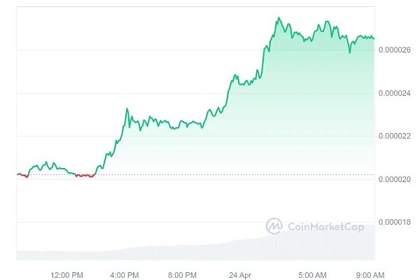 Bonk 单日涨幅高达 30%,引起了经验丰富的加密货币交易者的关注。在一个以不可预测性着称的市场中,其急剧上升尤其引人注目。目前,BONK 的市值为 $1.76B,定价为 $0.00002664。