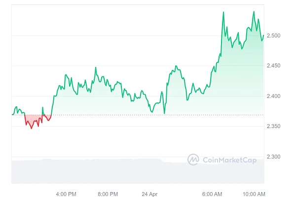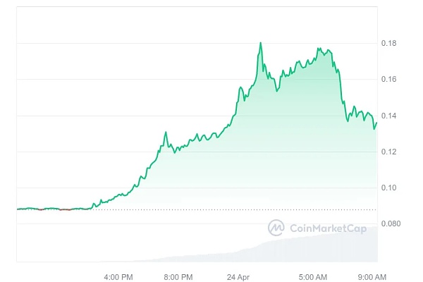 Hedera Hashgraph 的加密货币 HBAR 大幅上涨 100%,上涨 0.18 美元。大型金融公司贝莱德 (BlackRock) 于 4 月 13 日宣布,将使用 Hedera 区块链对其货币市场基金进行代币化。这一消息提振了 HBAR 的价格,超过了 4 月份的历史高点。