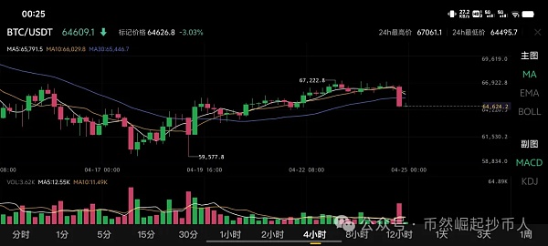 比特币 btc64800-65000 附近做空,目标 64000 附近止盈出局。