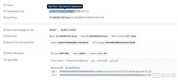 同样,在以太坊网络,假设执行发送代币这个操作,需要消耗Gas的数量是21000个单位,每个单位Gas价格是100gwei。则执行这笔操需要支付的费用:21000*100=2100000gwei。