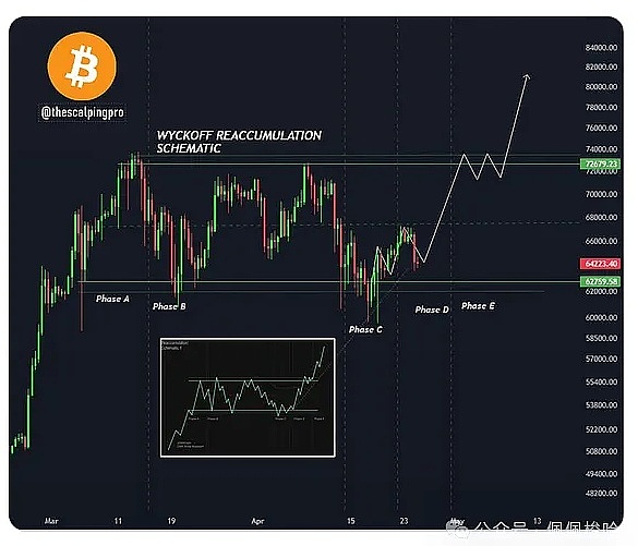 就 X 而言,分析师 认为比特币可能正在日线图上形成威科夫再积累模式。这意味着代币可能会在交易区间内盘整,然后在未来几天飙升。