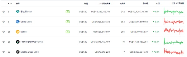 此外 BUSD 则受制于监管压力已经被 FUSD 取代,并伴随着 Binance 加快 LaunchPoll 的频率,总量迅速突破 35 亿美元;随后便是异军突起的 USDe,带了颇值得期待的新变量。