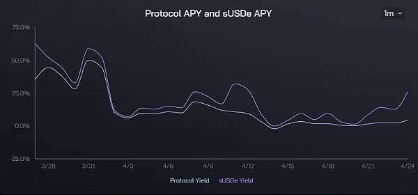 两相叠加之下,USDe 年化收益率就能达到 20%甚至更高。从此也可以看出,当市场极度看涨时,USDe 的年化高收益尤其有保障——因为 Ethena Labs 利用了在牛市做空赚取资金费率的机会。