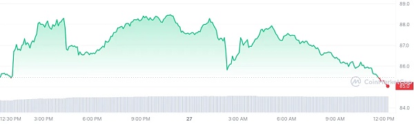 EOS价格已飙升至0.877799美元,大幅上涨。最后一天上涨1.64%,市值上涨1.45%至984,462,903美元。此外,交易量暴涨318.22%,达到436,866,201美元。