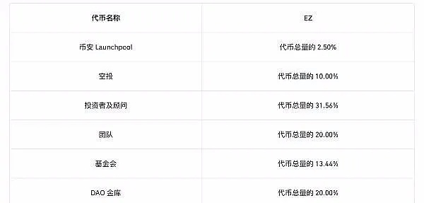 初始流通量:1,050,000,000 EZ(约占最大供应量的10.50%)