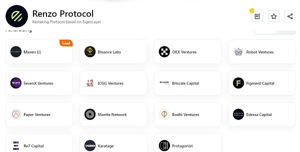 根据《The Block》报道,EigenLayer生态中的流动性再质押协议Renzo宣布完成了300万美元的种子轮融资,本轮融资由Maven11领投,OKX Ventures、IOSG Ventures、Figment Capital和SevenX Ventures等机构参与了投资。据OKX Ventures表示,这是他们在EigenLayer生态系统中首次宣布投资的项目。此外,币安基金会于2月22日宣布投资Renzo,但具体金额未对外公布。