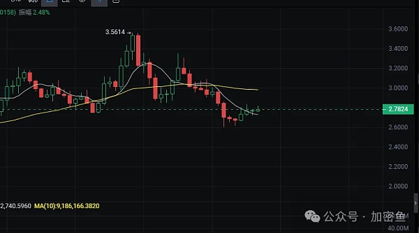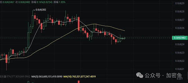 PEPE在这轮牛市中迅速拉升了10倍,但在达到这个高点后,价格迅速回落。目前,PEPE正在经历高位反弹的阶段。从短期来看,预计PEPE将继续在高位震荡,而其中长期的支撑线大约在30附近。