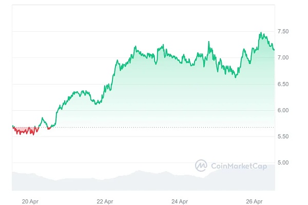 此外,NEAR的价格为7.13美元,上周上涨25.76%。其交易图表显示过去的阻力位可能会成为支撑位。根据艾略特波浪序列,趋势似乎很乐观,有望达到更高的高点。关键是尽早参与,尤其是在 ICO 阶段。