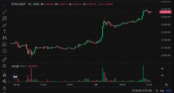 今(28)日凌晨,以太坊生态呈现普涨的态势,$ETH 在过去24 小时内,上涨6.5%,截稿暂报3,307 美元,SSV 代币表现亮眼,暂报50.84 美元,24 小时内上涨了15.8%。以太坊扩容方案$OP、$ARB 在单日内分别有14%、10% 的上升幅度,另外,LST 赛道中的$ETHFI 更有高达21.4% 涨幅。