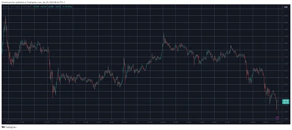 尽管此后有所收复,但 BTC 交易仍处于亏损状态,价值下跌超过 2%。