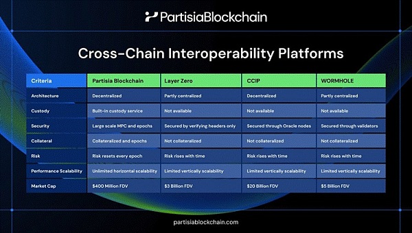Partisia Blockchain 是一个以 MPC 技术为特点的创新隐私公链,其通过将 MPC 技术方案引入到区块链系统中,并以零知识证明(ZK)技术和多方计算(MPC)等方案为基础,共同保障在不影响网络完整性和安全性前提下,实现数据的隐私性以及可审查。这意味着,Partisia Blockchain 相对于绝大多数链上隐私项目而言具备更好的合规属性,并具备与诸多 Web2 场景深入的融合潜力。当然,除了具备合规、高度可组合化、可定制化的隐私外,高度的可互操作性也是 Partisia Blockchain 网络的一大重要特性之一。Partisia Blockchain 通过推出一个名为 Oracle 的服务框架,并基于此构建系列原生的跨链互操作工具,以为网络与外界进行跨链互操作构建基础。何为 Oracle 服务框架?事实上,绝大多数区块链网络本身并不具备互操作能力,这是因为绝大多数区块链重点是兼顾去中心化与安全,而弱化互操作特性,比如以太坊与其他 Layer1 以及 Layer2 建立互操作性,通常是通过包括跨链桥在内的系列跨链设施来进行交互,而在以太坊生态内 Layer2 与 Layer1 的交互中,也高度依赖于排序器角色。所以链与链间的交互,通常依赖于三方的互操作组件,以实现资产、信息等的跨链互操作。虽然三方跨链设施能够根据不同的链的特点,进行相应的适配且具备一定的灵活性,但通常其难以扩展性、安全性和去中心化程度上进行兼顾,这也是跨链设施本身所面临的不可能三角。Partisia Blockchain 的 Oracle 服务框架是一个不错的示例,Oracle 服务框架是 Partisia Blockchain 网络中的一个原生组件,其通过不同的 Oracle 互操作节点驱动,其不仅能够扩展区块链功能进行支持,使其与外部数据源交互,还能够让 Partisia Blockchain 升级为多功能、私密、高效和互联的数字经济解决方案。Oracle 服务框架作为 Partisia Blockchain 网络的一个原生组件,其能够从 Partisia Blockchain 网络中获得原生支持,并继承 Partisia Blockchain 网络的所有优势。一方面在于,其不仅能够从可拓展的计算能力中(网络中引入了 zk 计算节点,将分布式的链下计算能力引入链上)获得足够的安全性以及可拓展性,同时其能够嵌入至包括MPC-as-a-Service 、统一公共和私人智能合约等在内的系列功能特性中,并与适配于各类应用场景,并能够保障信息传输的隐私特性。Oracle 服务框架本身遵循 Partisia Blockchain 的 Poseidon 共识机制,同时在分片方案的促进下,其在处理各类互操作工作时具备极好的效率。所以背靠 Partisia Blockchain 网络的 Oracle 服务框架能够继承该系统的所有优势,相对于 LayerZero、CCIP、Wormhole 等互操作方案,该方案在去中心化的、安全的、易于扩展等方面具备较为突出的优势。
