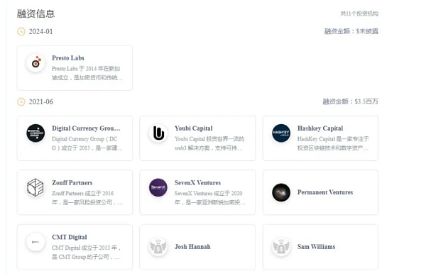 2021年6月:A轮融资,由Libertus、Mask Network和Hash Global联合领投,共筹得3.5百万美元。