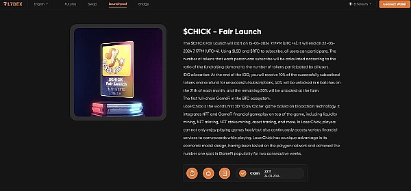 除此以外,L7 Labs通过严谨地分析评估后,投资并孵化了另外两个加密项目,分别是NEO FANTASY,一款全自主IP创作的放置类回合制卡牌GameFi;以及LoserChick,首款基于区块链技术的3D "抓娃娃" 游戏。L7 DEX旗下的Launchpad配合这两个项目完成了IDO,两“𢧐”均大获全胜!