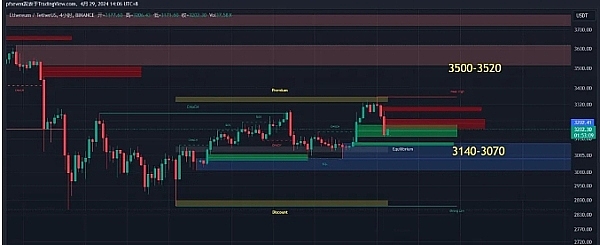ETH依然符合昨日突破后的回踩预期,3140-3070需求区仍然是重点关注的吸筹买入区域,就是BTC不能同步的情况下,还得墨迹!
