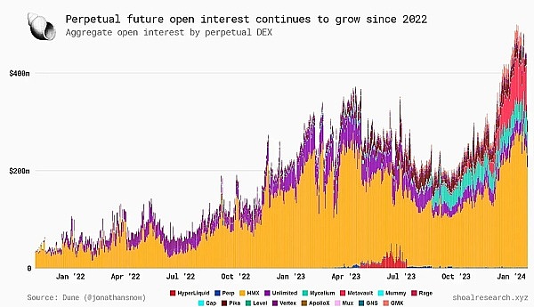 在衍生品合约交易领域,中心化交易所仍占主导地位,但不可否认,去中心化的衍生品协议在过去两年中快速发展,未平仓总量实现了近 10 倍的增长。