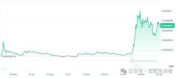 与之前人们对拉高抛售Meme币的印象不同,PEPE今年的涨幅超越了其他加密货币。仅在两个月前,PEPE创下了0.00001074美元的历史新高。如果加密货币市场出现复苏,PEPE可能会再次达到类似的高点。