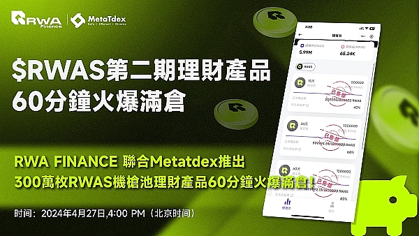 MetaTdex平台(RWAS孵化方)RWAS机枪池理财热度攀升,再度发售的300万额度在60分钟内售罄。该产品具备起投额度低、收益高、周期灵活、保本保息(币本位)等优势。第2期年化收益达到40%-80%。