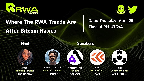 4月25日,以《比特币奖励减半,RWA趋势在哪里》的行业探讨在RWAS官方推特直播,Tiamonds、ActualOne、K.O.I、Synbo Protocol等项目嘉宾参与。观点摘录:比特币区块减半已经发生,在区块高度840000成功完成;这是第4次减半,挖矿奖励由6.25BTC减半至3.125BTC;比特币减半后一定周期内,币价上涨有周期性规律;RWA基友可能是是领涨加密板块。