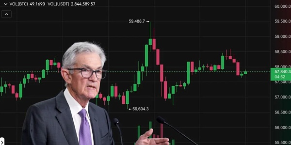 而在鲍尔释出偏鸽派的言论之后,BTC 又缓慢的震荡走高。截稿前线报57,840美元,近24小时下跌3.46%。