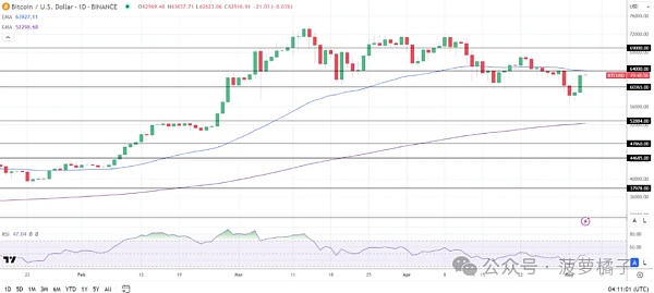 14日RSI读数为47.04,比特币在进入超卖区域之前可能会跌至55,000 美元大关。