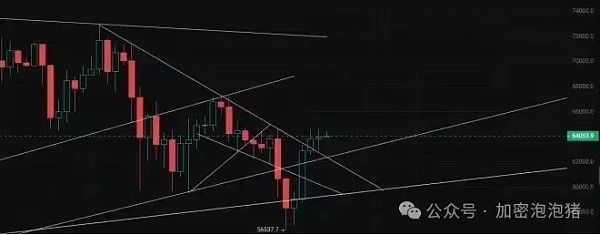 昨天比特币最低点为62833,最高点为64644,日内波动为1811美元,振幅为2.9%。以太坊最低点为3071,最高点为3171,日内波动为100美元,振幅为3.2%。