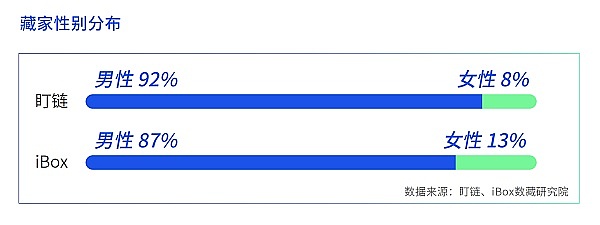 从整体用户来看,在数字藏品领域,男性藏家比例一直高于女性藏家,2023年表现尤其明显。据盯链数据显示,2023年男性藏家、女性藏家占比分别为92%、8%。而在iBox平台上,2023年男性藏家亦高于女性藏家,占比分别为87%、13%。未来随着藏品类型、玩法创新等的变化发展,数藏圈有可能会吸引更多女性藏家入场。