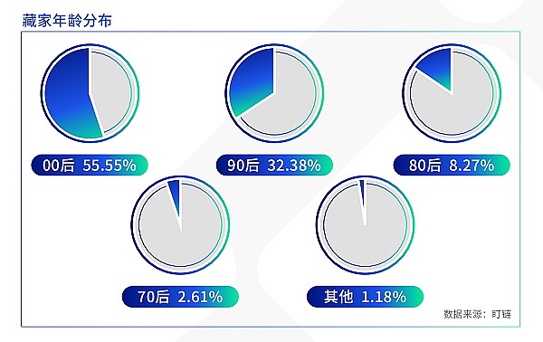 作为一种新兴事物,数字藏品自诞生之初,便吸引了大量年轻人的目光。报告数据显示,2023年00后更是成为数藏消费的主力军,人群占比高达55.55%,占据了数字藏品市场“半壁江山”。