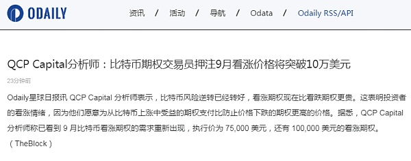 QCP Capital分析师:比特币期权交易员押注9月看涨价格将突破10万美元