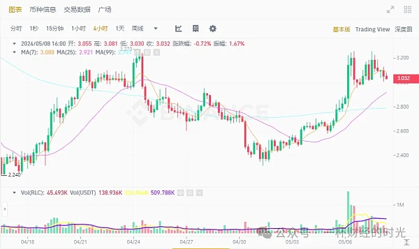 热度飙升,涨幅达50.21%;Huobi Global定于5月5日开放RLC币币交易。基本面上,RLC是全球首个提供安全“数据租赁”创新商业模式的分布式云计算平台。从社区