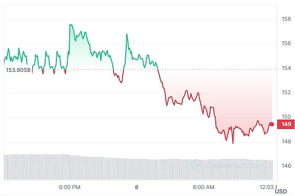 在过去的一年里,SOL 的价格大幅上涨了 614%,展现了其非凡的增长轨迹。目前其交易价格为 149.6 美元,较 200 日简单移动平均线 113.68 美元高出 32.65%。尽管最近 24 小时内跌了2.73%,但该加密货币的 14 天 RSI 为 52.98,表明有可能出现横向波动。过去30天其波动率保持在10%的相对较低水平,表明市场波动中保持稳定。SOL 提供高流动性,成交量与市值的比率为 0.1056。其市值为$69.08B,24小时交易量为$7.29B,吸引了寻求加密货币稳定和增长的投资者。