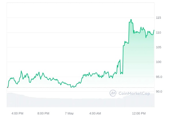 截至最新数据,TRB在过去24小时内飙升超过22%,达到约110.79美元。此外,Tellor 的总锁定价值 (TVL) 于 2024 年 5 月 3 日突破 500 万美元。Tellor Crypto 目前市值约为 284,668,810 美元,交易量下降 4.64%。