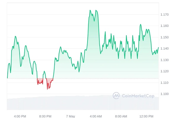 Jupiter 在 Solana 生态系统中提供了关键的流动性基础设施。在山寨币市场看涨的情况下,该代币的价格大幅上涨。过去一周,该代币上涨了 22.45%,市值达到了 15.3 亿美元。这一价值的飙升使得 JUP 的价格达到了 1.139551 美元,过去 24 小时的交易量为 2.7267 亿美元。