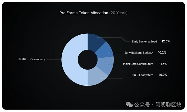 io.net 在创世时的初始供应量为 500,000,000 美元 IO,分为五个类别:种子投资者、A 系列投资者、核心贡献者、研发以及生态系统和社区。