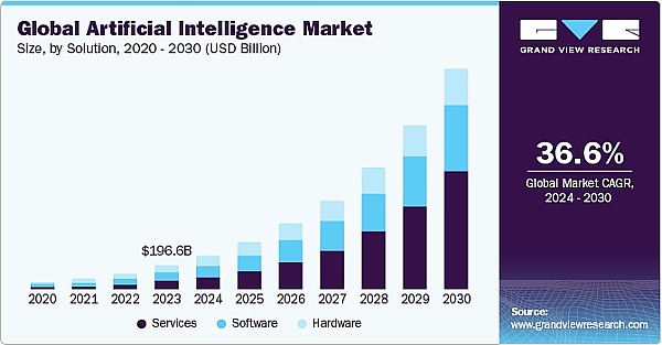 AI不仅仅是一个流行词,而且是塑造我们生活的世界的技术力量。随着企业和行业越来越认识到AI的变革潜力,全球AI市场将呈指数级增长。预测显示,到2024年末,人工智能市场将飙升至惊人的5543亿美元。这种显著的增长是由一系列因素共同推动的,从人工智能的采用增加到该领域的持续创新。